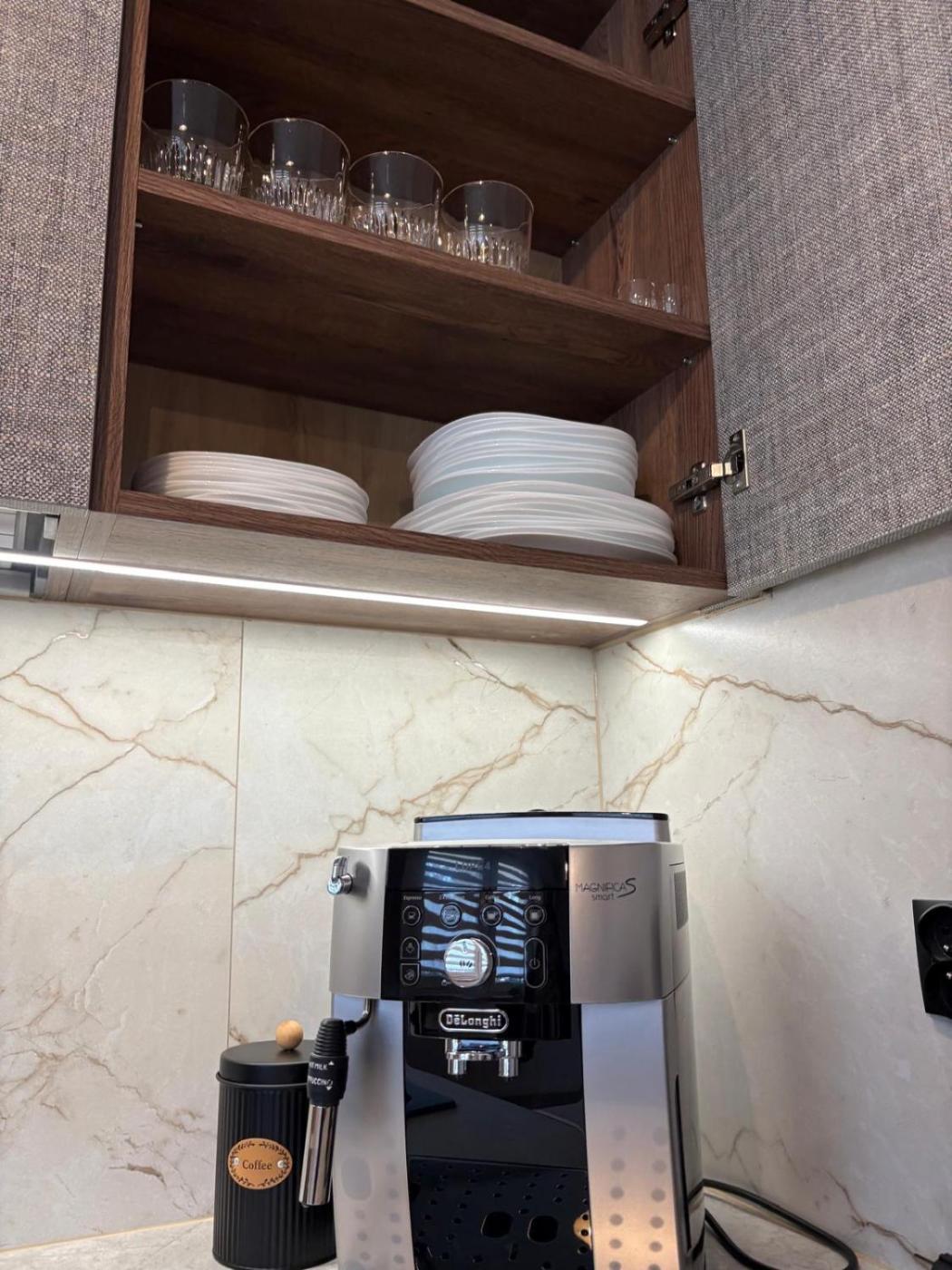 Apartamenty oferują dodatkowe udogodnienia w pokoju, takie jak gniazdko koło łóżka 🔌, rozkładaną sofę, wieszak na ubrania, żelazko oraz sprzęt do prasowania. Podłoga wyłożona kafelkami lub marmurem 🏠 wprowadza elegancki charakter, a prywatne wejście zapewnia pełną niezależność.